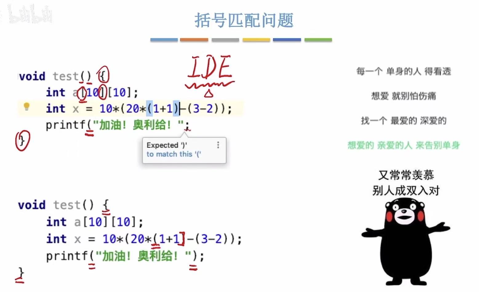 当我们打代码的时候,如果我们一不小心落下一个右括号,编译器就会报错提示我们。