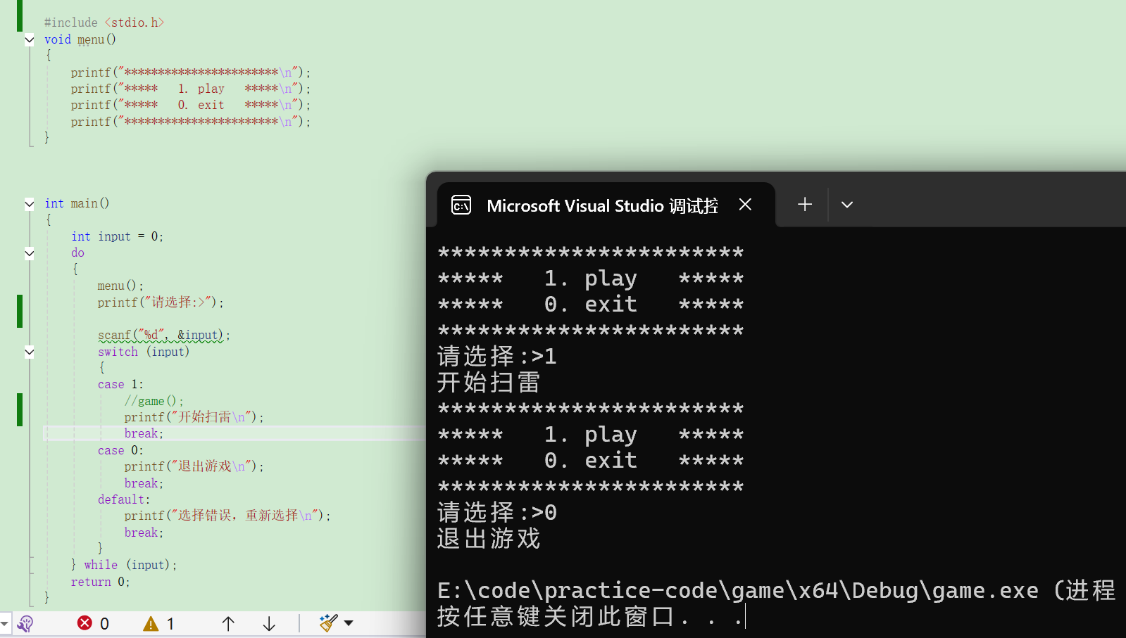 printf("开始扫雷\n");