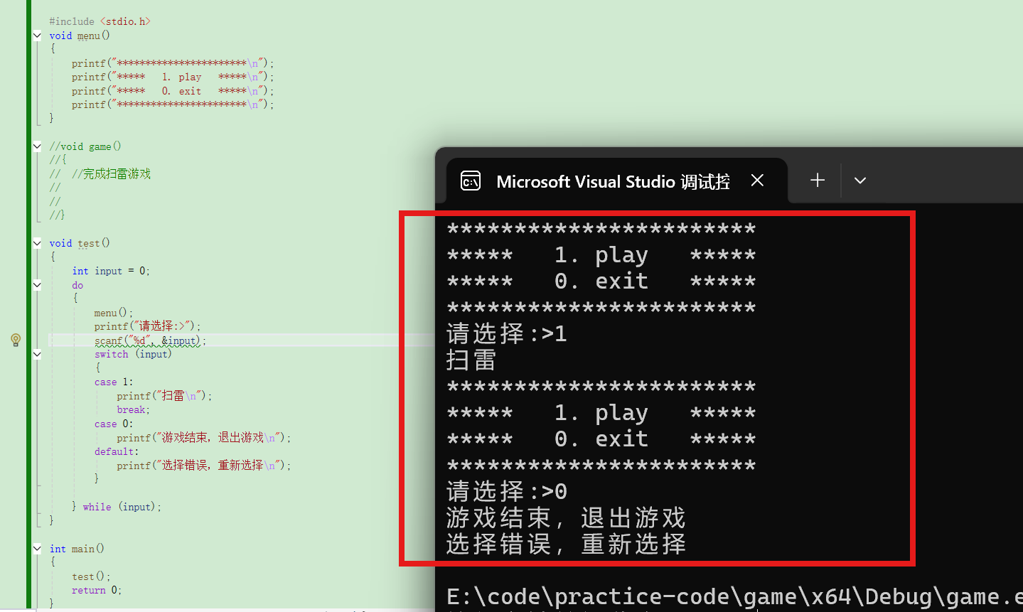 printf("游戏结束,退出游戏\n");