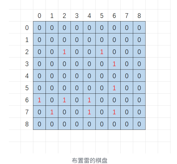 那如果这个位置布置雷,我们就存放1,没有布置雷就存放0.