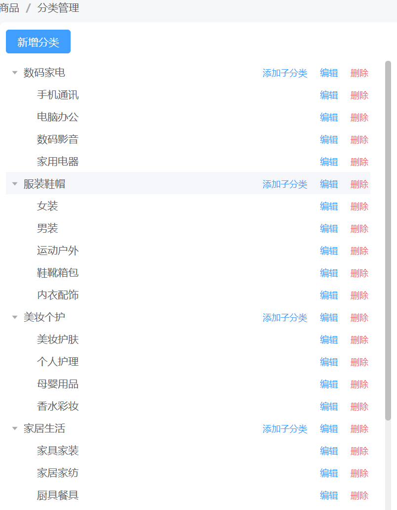 这部分需要细讲,要如图展示需要人为对类进行改造,要给sysCategory类加上List<sysCategory> children属性,便于树形展示 convertLine2Tree对查找到的所有数据进行递归 将子分类加入到children中