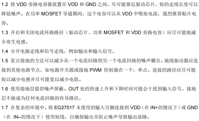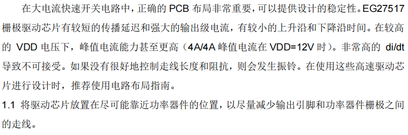 本文基于屹晶微电子 EG27517 芯片数据手册 V1.0 版本整理编写,并结合高频大电流功率驱动设计经验。具体设计与元器件选型请务必以官方最新数据手册为准,在实际应用中必须将PCB布局作为设计的最高优先级进行反复优化与验证。