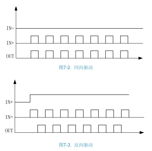 - 同相模式:使用IN+,将IN-引脚接地(GND)。