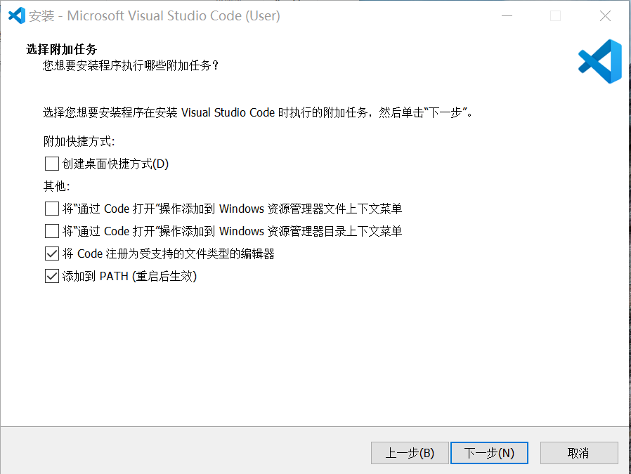 3.到"选择附加任务"步骤,确定最后两项勾选√上