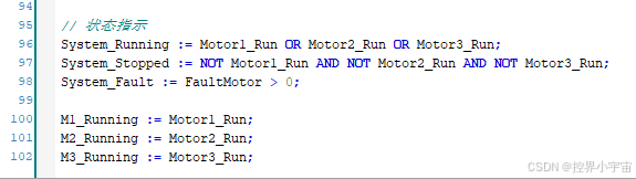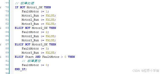 - FaultMotor变量记录故障电机编号,便于HMI显示故障位置,快速定位问题。