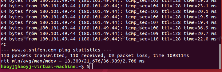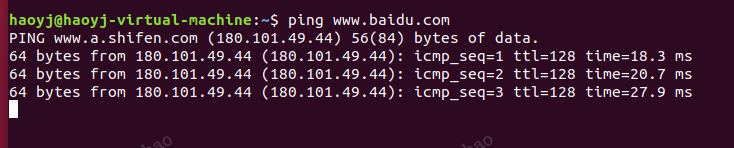 再按 Ctrl + Alt + T组合键,打开终端,输入 ping www.baidu.com