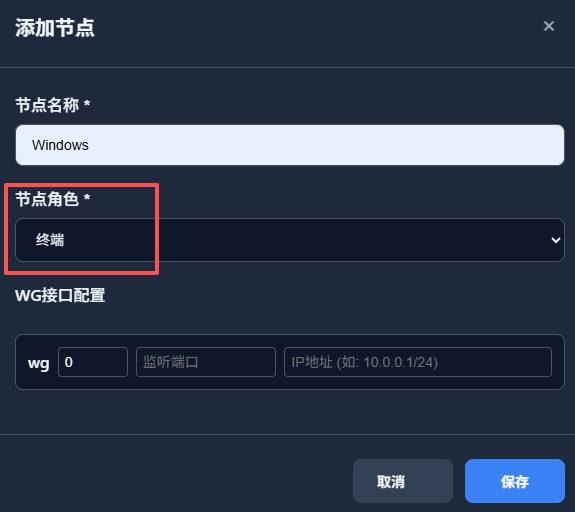 万丈高楼平地起。首先,添加节点时,我们需要选择节点角色为【终端】,这样可以仅生成客户端配置文件。