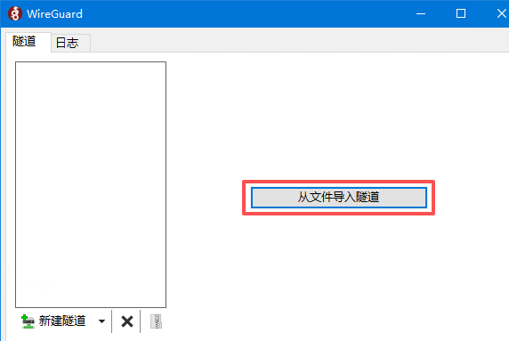 在Windows系统的客户端中,我们单击【从文件导入隧道】,选择刚刚下载的配置文件。