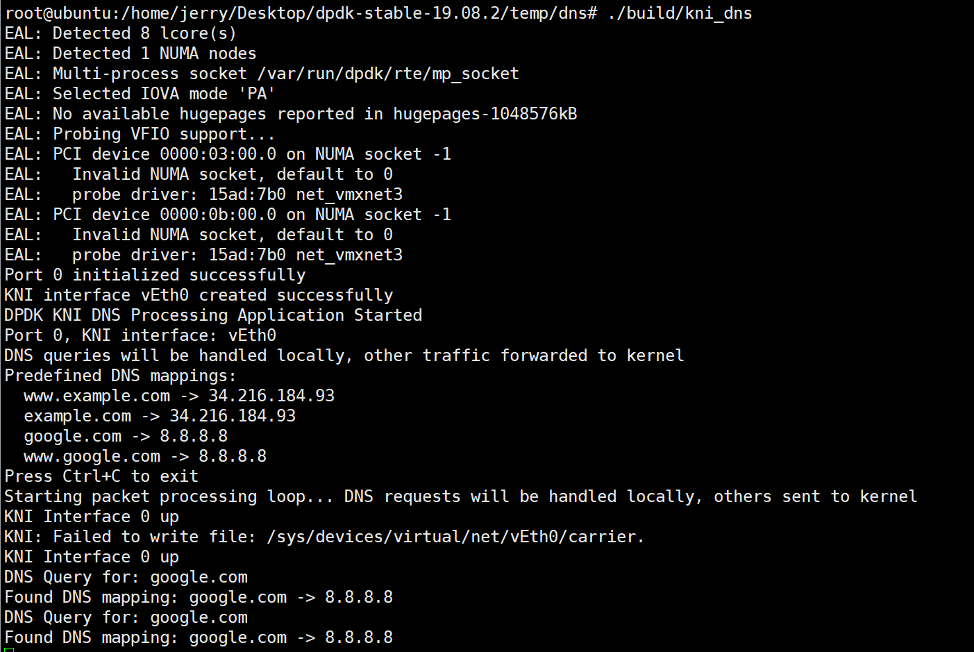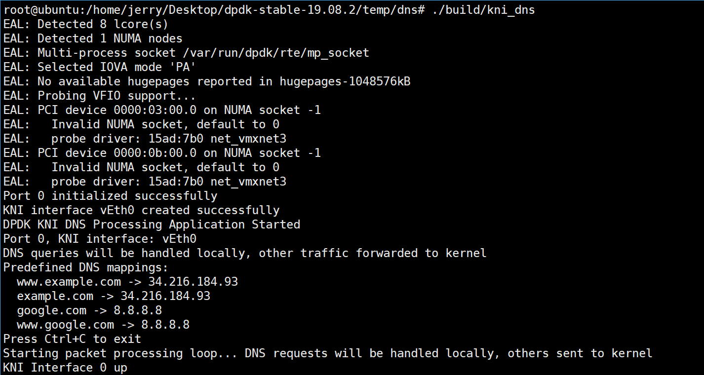 printf("DNS queries will be handled locally, other traffic forwarded to kernel\n");