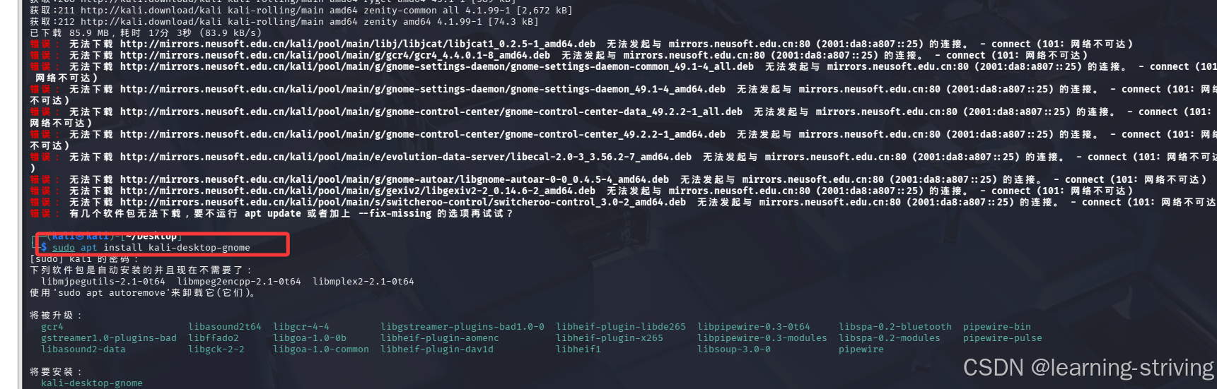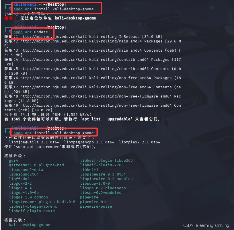 sudo apt install kali-desktop-gnome
