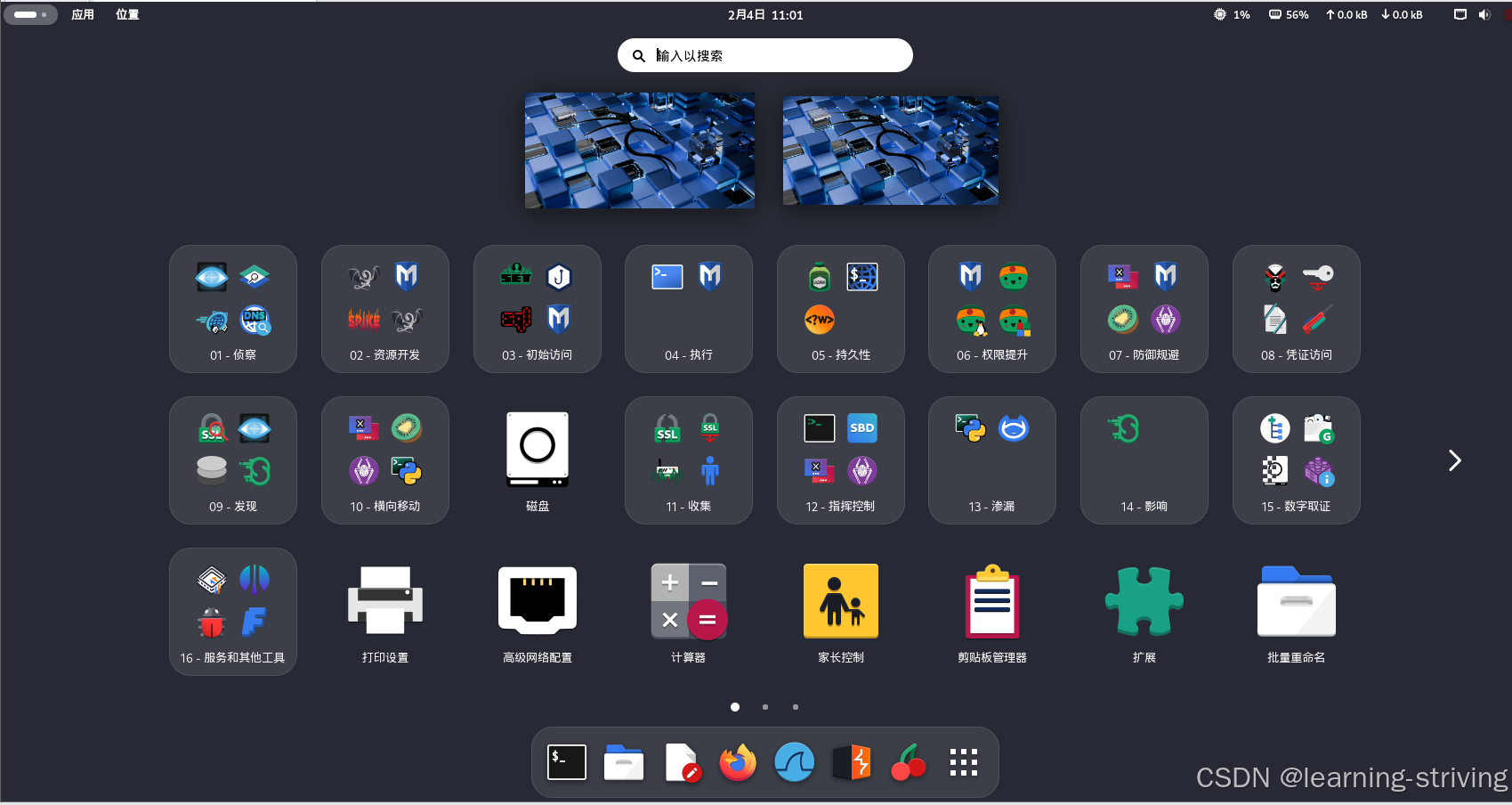 kali提供两个版本桌面,Xfce和GNOME,Xfce为默认桌面,如下