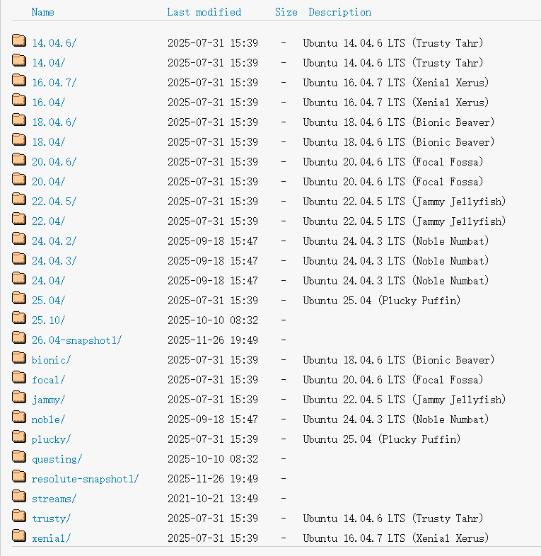 在历史releases:https://old-releases.ubuntu.com/ 中,打开ubuntu子文件夹(根据下载页面直接猜类似的布局也能看出来):https://old-releases.ubuntu.com/ubuntu/
