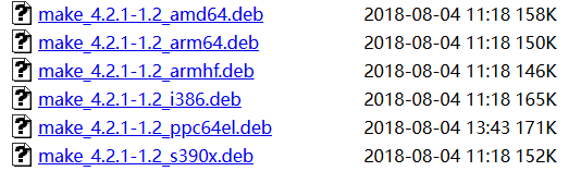 从这里就进入下载页面里的子目录https://old-releases.ubuntu.com/ubuntu/pool/main/m/make-dfsg/ 中,很快就能找到所需deb文件: