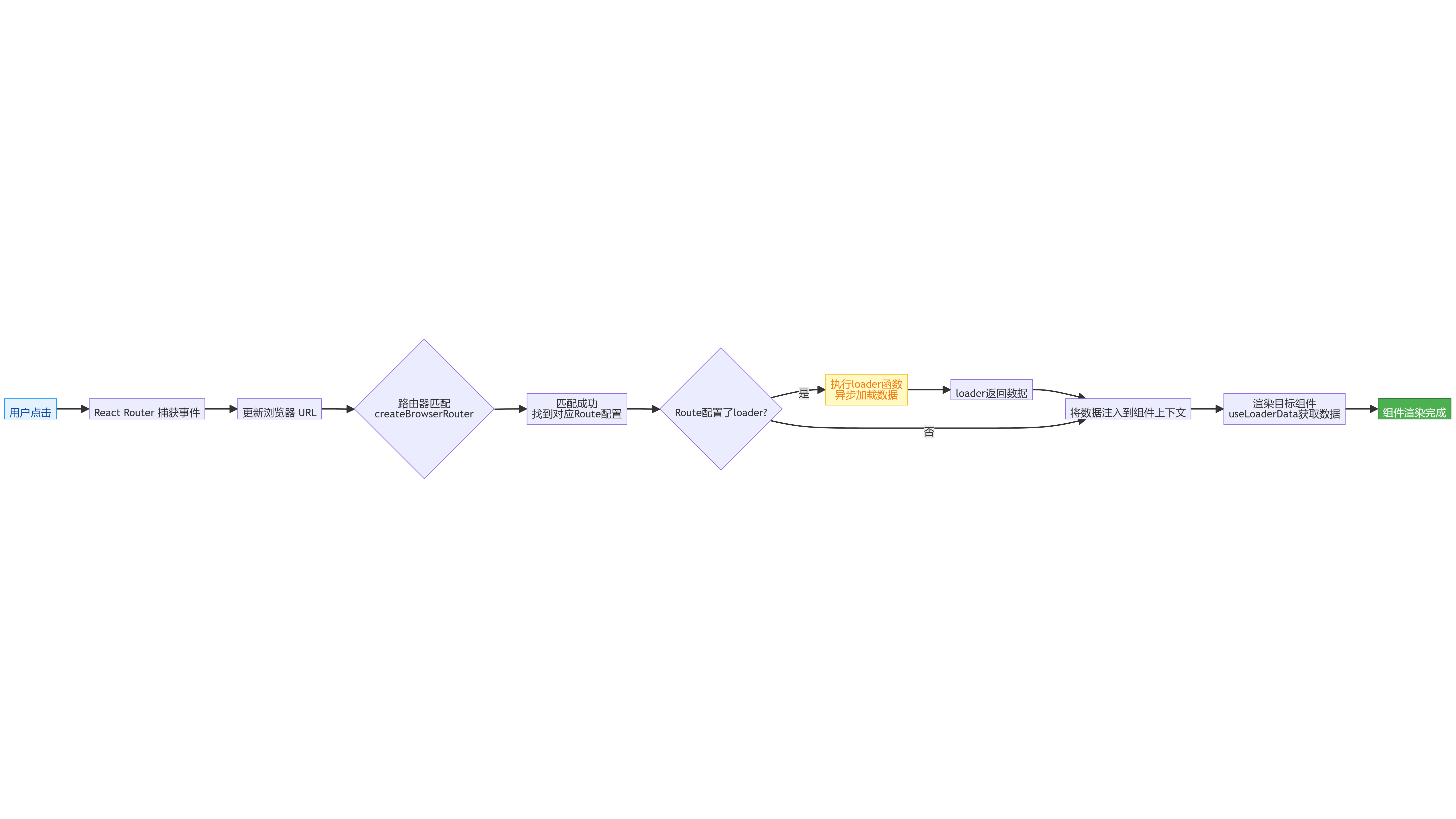 这个流程图展示了从用户点击链接到页面最终渲染的完整生命周期,其中loader是v6.4+版本的核心优化。