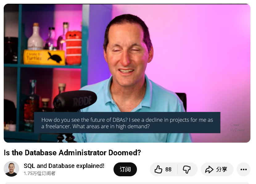 听说,嗯,今天我们就看看国外的IT类博主,专家对DBA这个职业的看法,我们将选取多为国外的IT类的博主的视频和研讨会对这个部分进行一个分析。