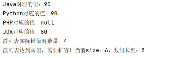 System.out.println("JDK对应的值:" + map.get("JDK")); // 输出80