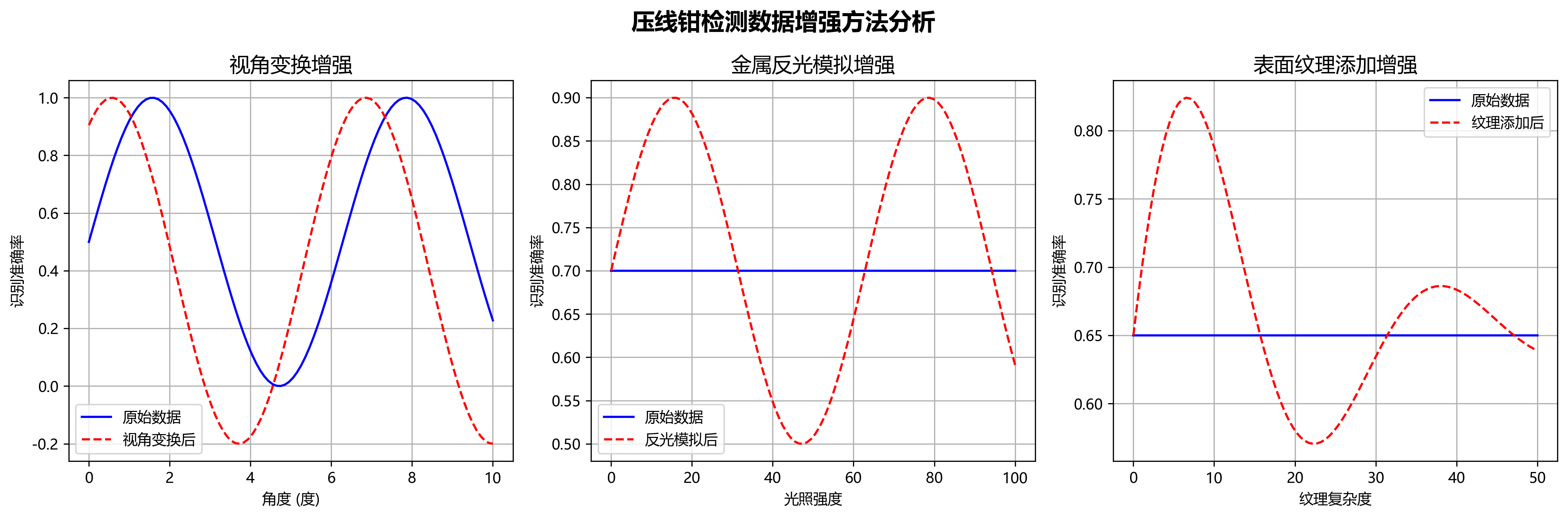 上述代码实现了针对压线钳检测的特殊数据增强方法,包括视角变换、金属反光模拟和表面纹理添加。这些增强方法能够模拟实际生产中压线钳的不同外观变化,提高模型对各种情况的适应能力。视角变换增强了模型对压线钳不同角度的鲁棒性;金属反光模拟提高了模型对光照变化的抵抗力;表面纹理添加则增强了模型对压线钳表面细节的识别能力。
