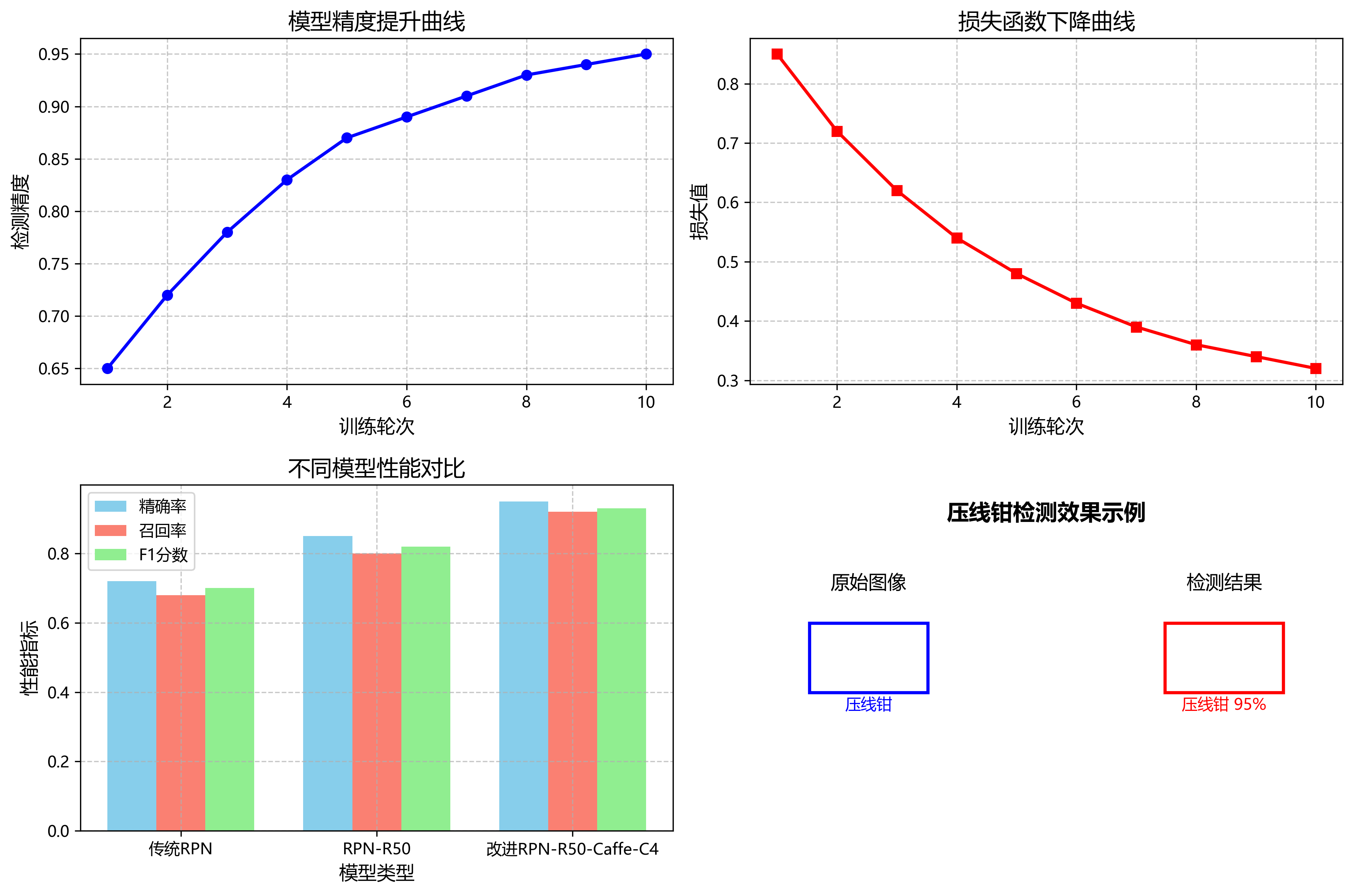 本研究提出了一种改进的RPN(Region Proposal Network)结构,结合ResNet-50骨干网络,构建了RPN-R50-Caffe-C4模型,显著提升了压线钳检测的精度和实时性。💪