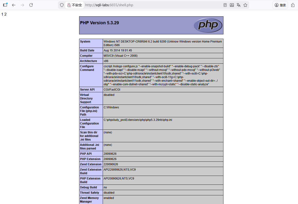 访问网站http://sqli-labs:6655/shell.php
