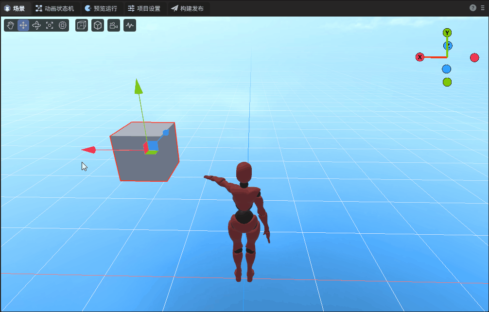 场景视图的运行时编辑能力是 LayaAir 3.4.0 后续 Beta 版本即将推出的重要功能,它的核心作 用是即使开发者在项目预览运行状态下,依然可以在场景视图中直接点选节点,并对其位置、旋转、缩放等变换属性进行实时操作,所有调整都会即时作用于当前运行中的逻辑系统、物理计算以及渲染结果。这使得场景视图从"静态编辑工具"升级为"参与运行态的调试窗口"。