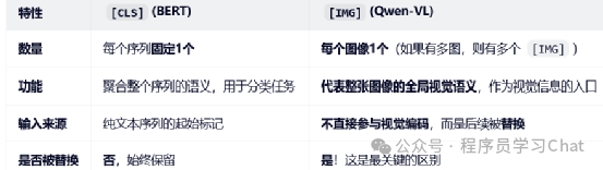 为了统一处理图像编码器输出的图像特征编码表示和文本特征编码表示,Qwen-VL在图像特征编码表示的前后添加了[img][/img]标记,用于标记一个图像特征编码表示的开始和结束,[img]类似于BERT中的[cls]标记符号,但是二者存在一些区别