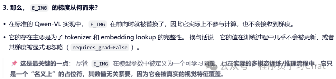img\] 是一个"名义上可学习、实际上被忽略"的占位符向量,不参与训练,随机初始化成什么值都没有关系,它的主要作用就是标记图像特征编码表示的起止,可以自然的将图像编码特征引入到以往语言模型输入处理的流程中。