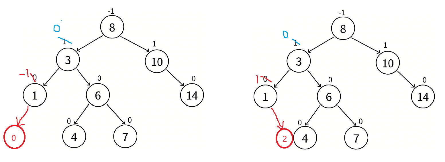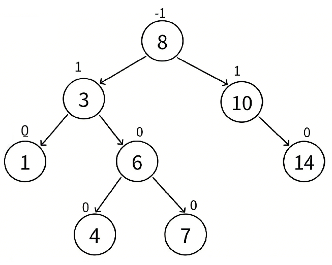 比如这就是一个AVL树,其节点上的数字就是每个节点的平衡因子。