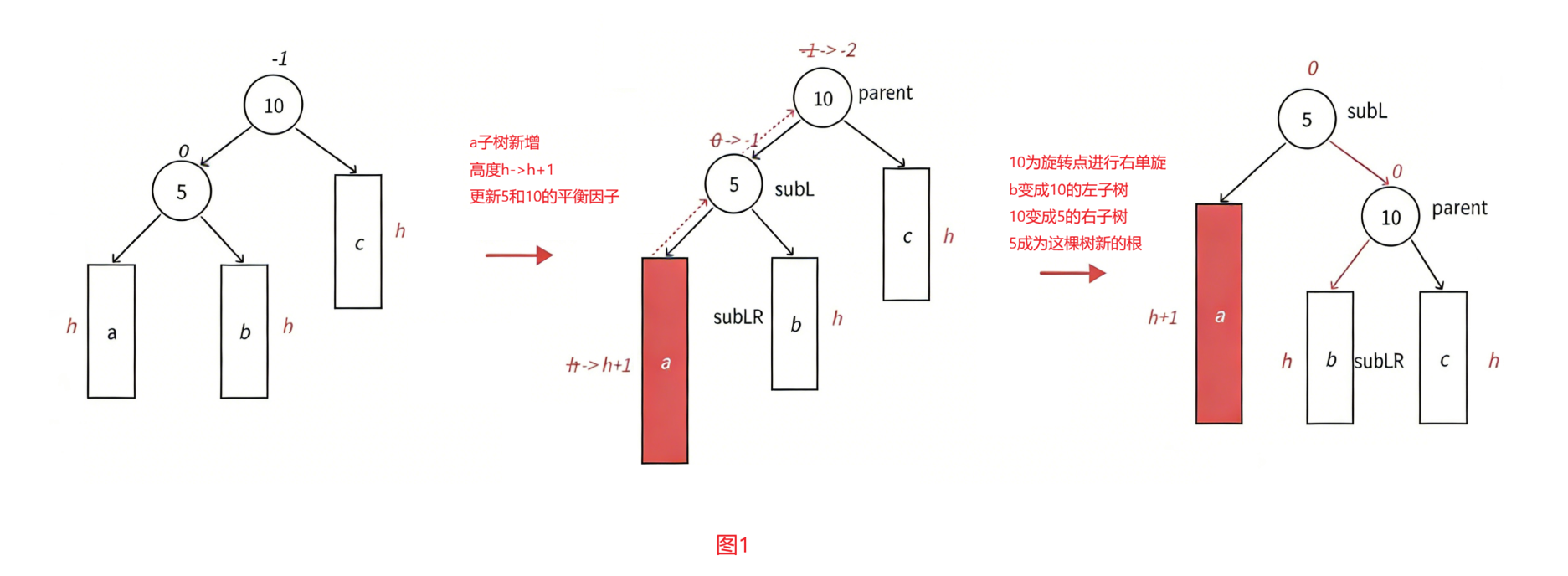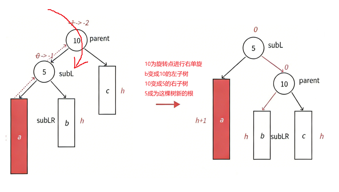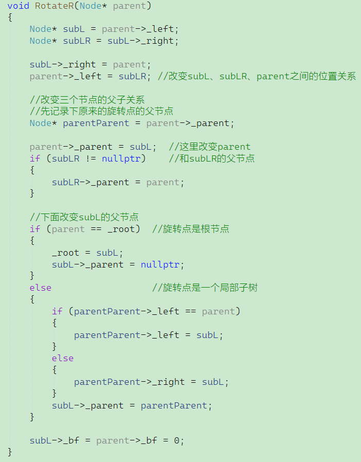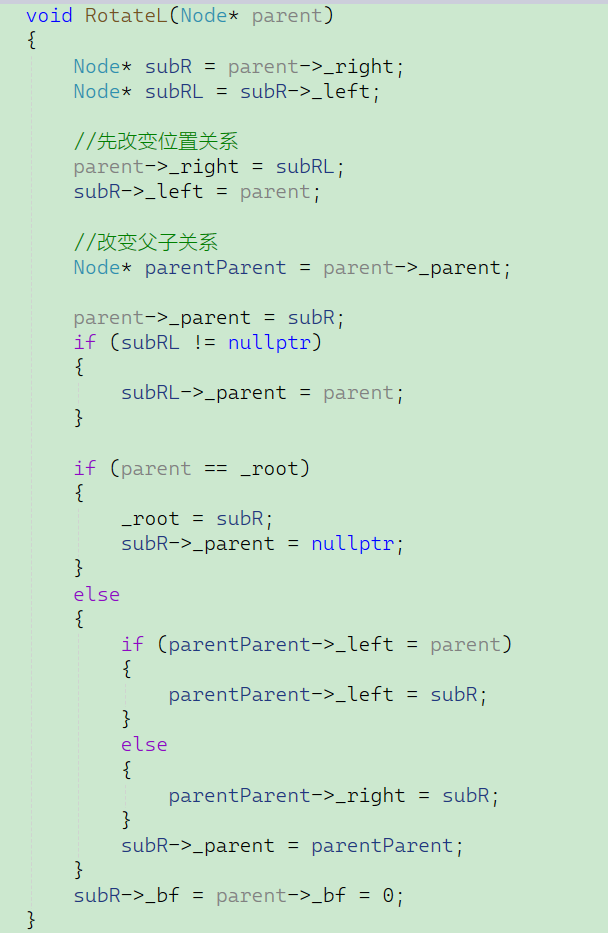parent->_left = subLR; //改变subL、subLR、parent之间的位置关系