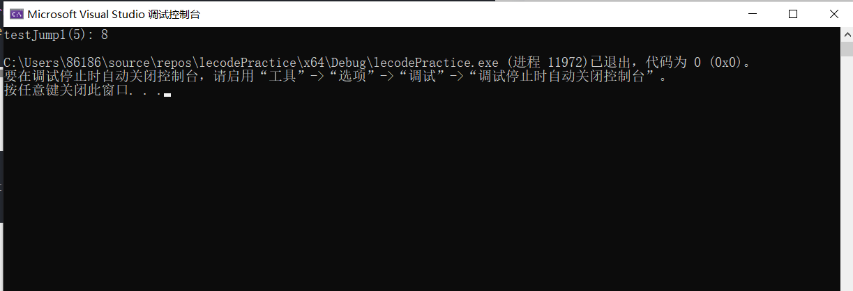 std::cout << std::format("testJump1({0}): {1}", 5, testJump1(5)) << std::endl;
