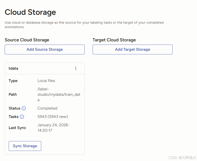 在 Label Studio 中,来源云存储 和目标云存储是两个功能完全不同的模块,核心区别如下: