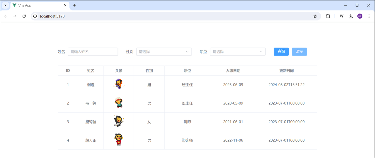 启动起来之后,我们就可以访问前端Vue项目了,访问路径:http://localhost:5173