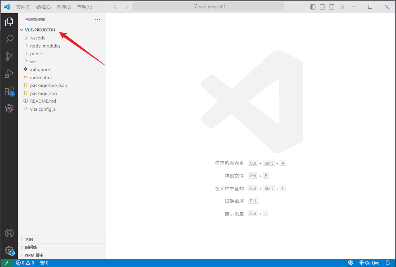 项目创建完成以后,进入vue-project01 项目目录,执行命令安装当前项目的依赖:npm install