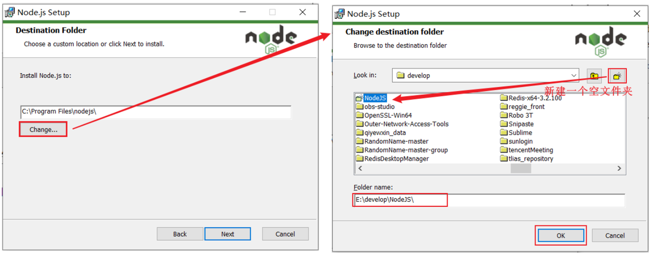2). 选择安装到一个, 没有中文,没有空格 的目录下(新建一个文件夹NodeJS)