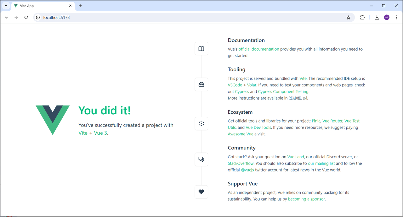 **提示:**执行上述指令,将会安装并执行 create-vue,它是 Vue 官方的项目脚手架工具