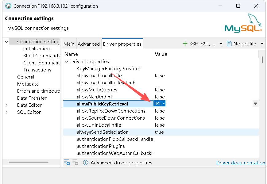 dbeaver 连接数据库时报Public Key Retrieval is not allowed