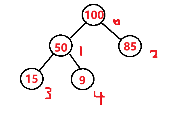 父节点和子节点的关系。左孩子=父节点2+1;有孩子=父节点 2+2;父节点=(孩子-1)/2;