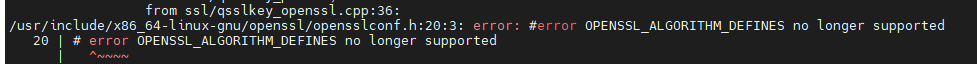 当前编译的项目(如 Qt/Qt Creator)中定义了 OPENSSL_ALGORITHM_DEFINES 宏,但该宏在你安装的 OpenSSL 1.0.2s 版本中已被废弃 / 移除。