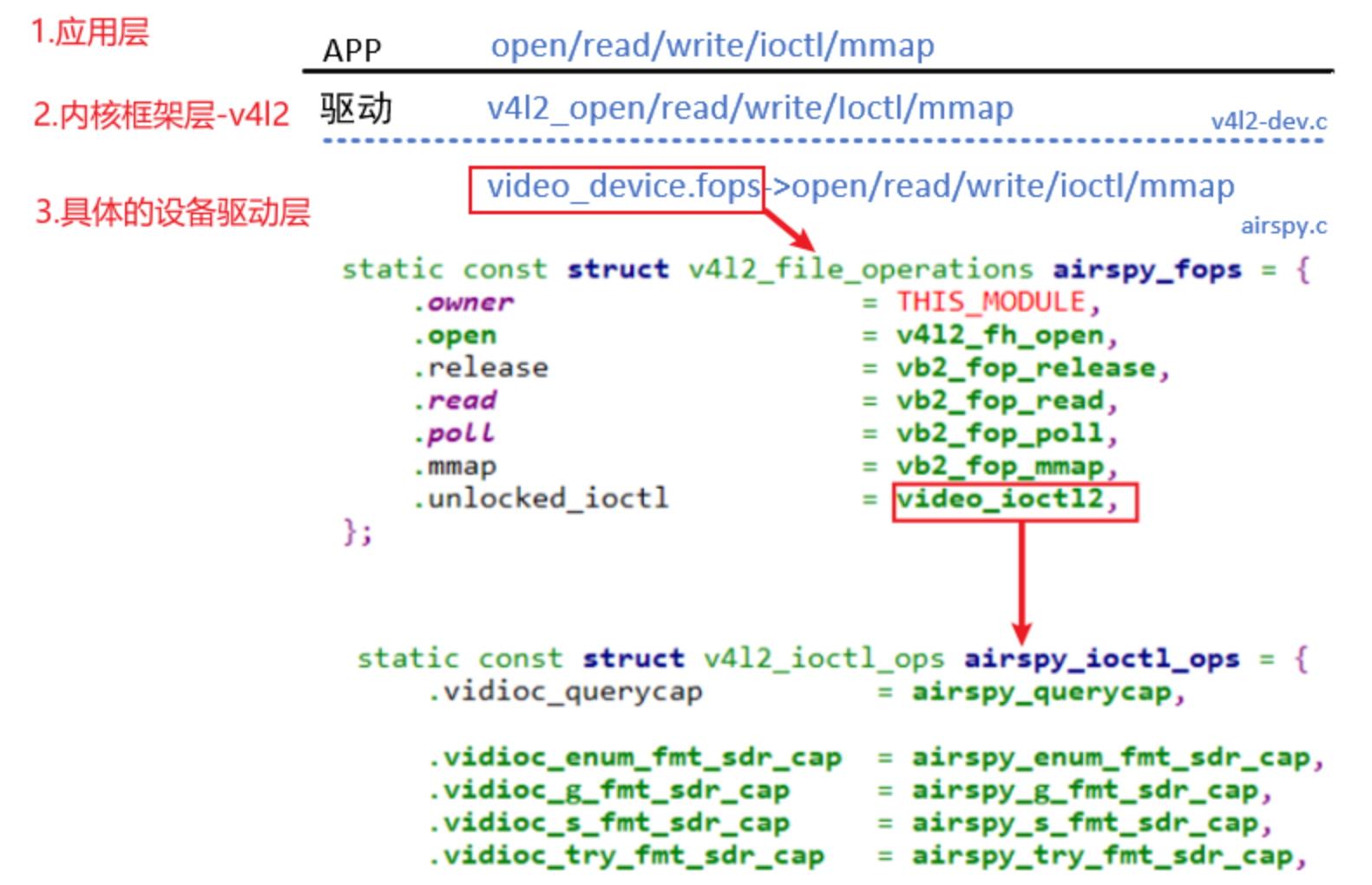 1、与ALSA套路是一样的,V4L2实现了驱动框架(不变部分),设备驱动则实现变化的部分;
