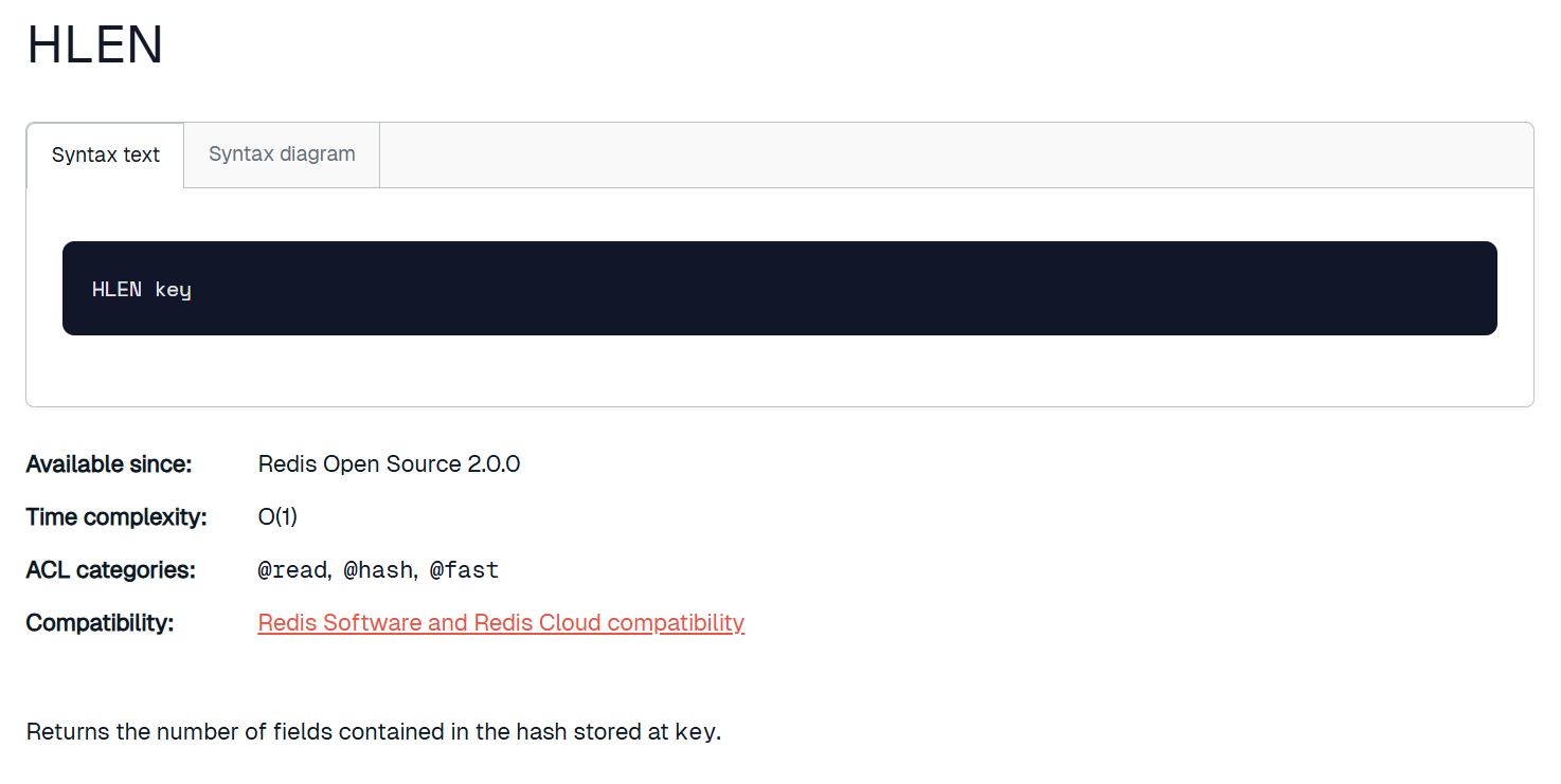 获取 hash 中的所有字段的个数。