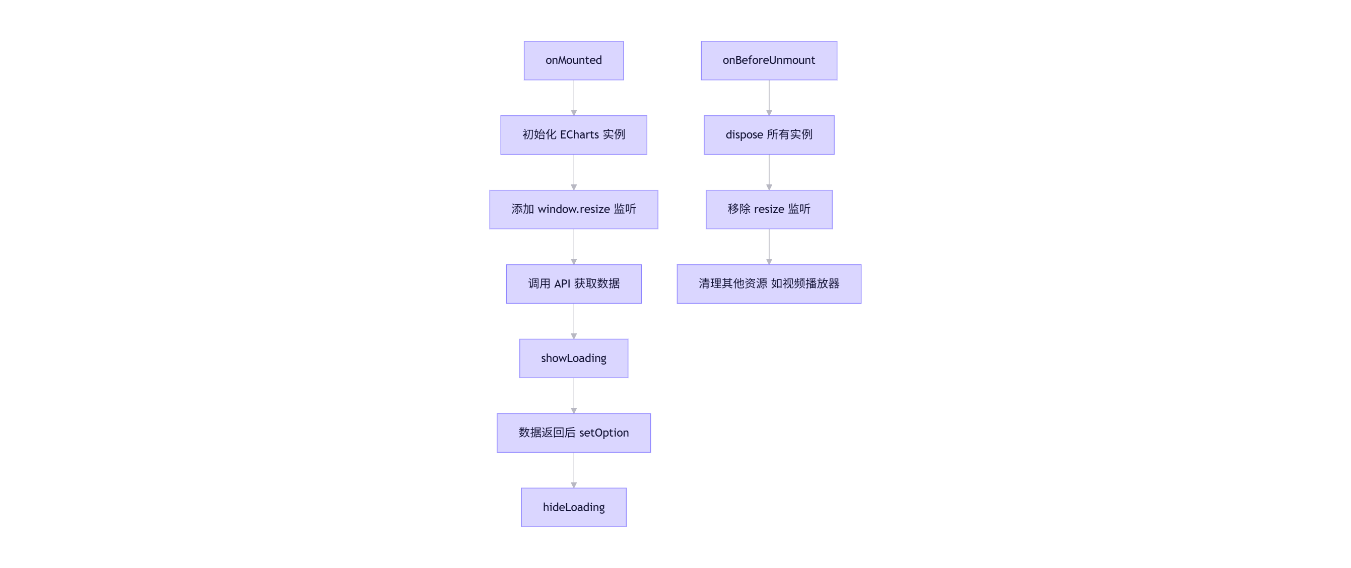 在开发基于 Vue3 的大屏数据可视化系统时,ECharts 是我们最常使用的图表库之一。然而,若不注意其生命周期管理,很容易出现 图表无法响应窗口缩放、重复加载卡顿、甚至内存泄漏 等问题。