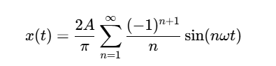 根据数字信号处理理论,一个理想的方波是由基波和无穷多个奇次谐波组成的。其傅里叶级数展开式为: