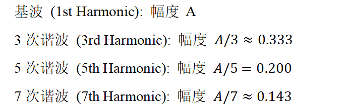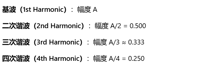 这意味着,在理想无失真的情况下,各次谐波的幅度比例应严格遵循: