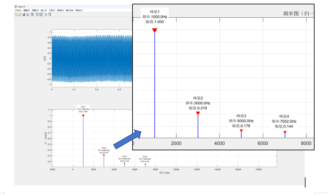 其次,还有重难点是考察对于傅里叶变换(频谱)的理解,目标是分辨出输入音频波形的类型,输入音频分为正弦波、锯齿波、矩形波三种,要求能分辨出准确的基准频率,还要分辨出波形类型。原理很简单,可以详见之前的文章:基于MATLAB的麦克风音频效果测试,通过对频谱的基频、高次谐波的分析,得到对应的高次谐波分量强度进而分析出波形类型。