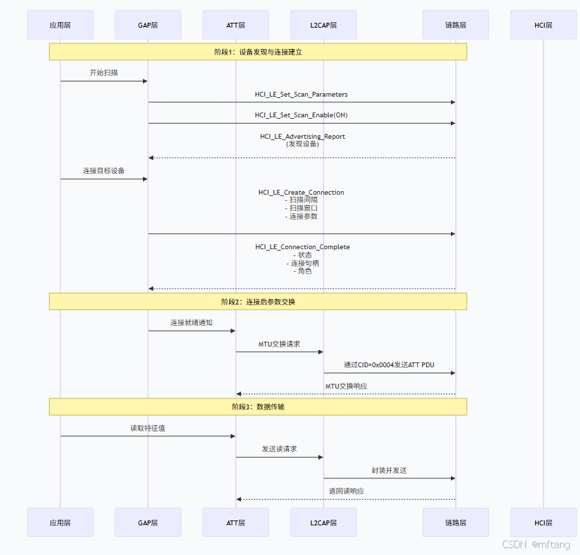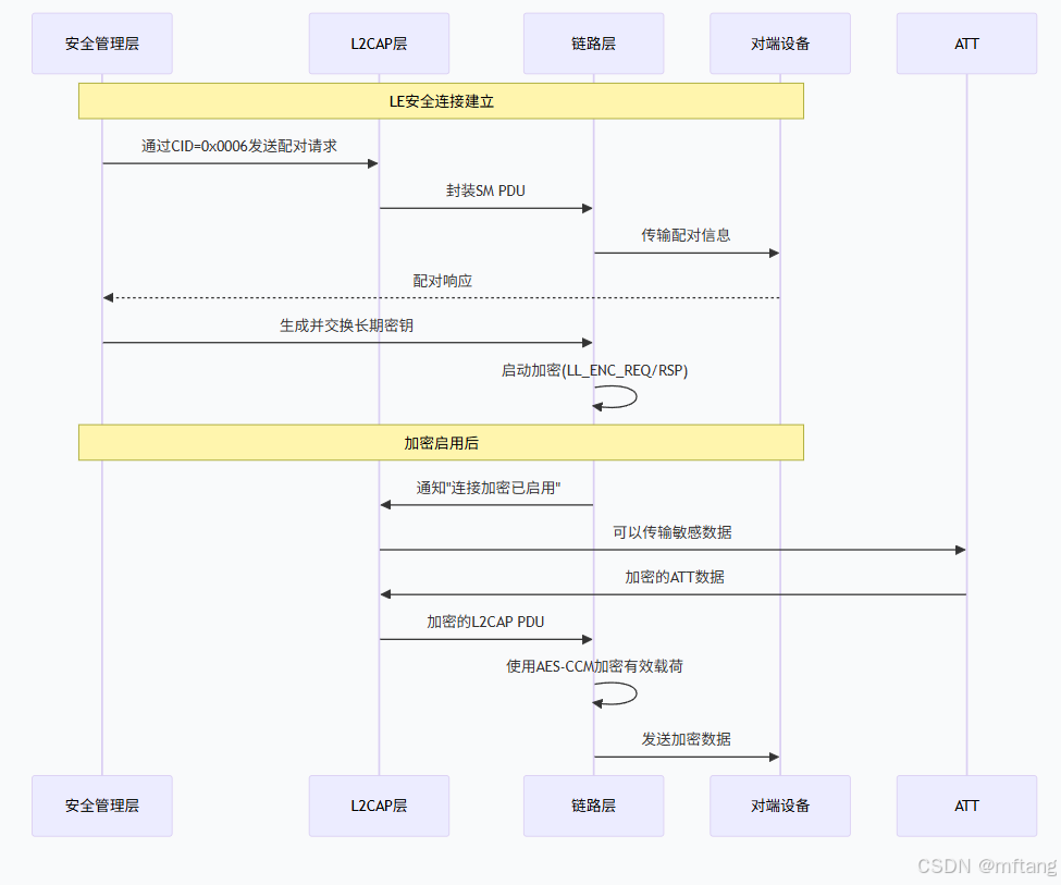 链路层(Link Layer)与ATT/L2CAP的交互是BLE协议栈的核心通信枢纽。他们三者的紧密协作,使BLE能在极低功耗下实现可靠通信,这是BLE协议栈设计的精髓所在。以下是它们之间交互的全面解析: