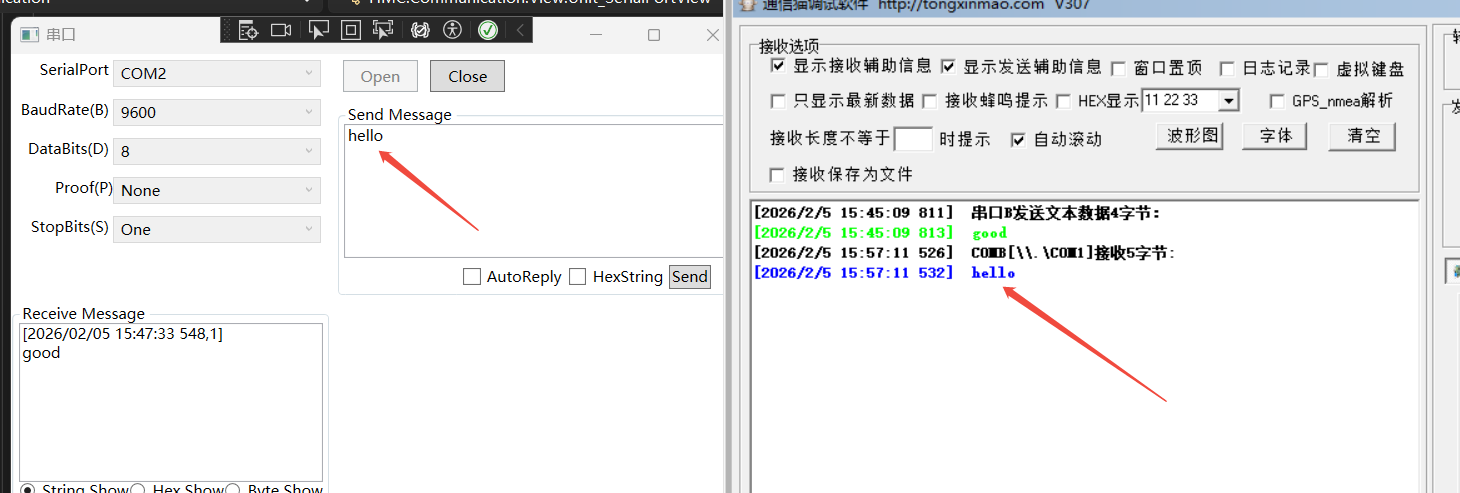 串口发送消息: