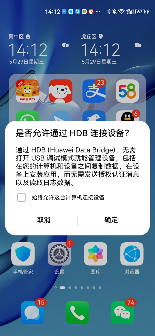 如果遇见开启"允许通过HDB连接设备"选项,需要隐私密码,这种情况,我们可以尝试OTG外置备份。