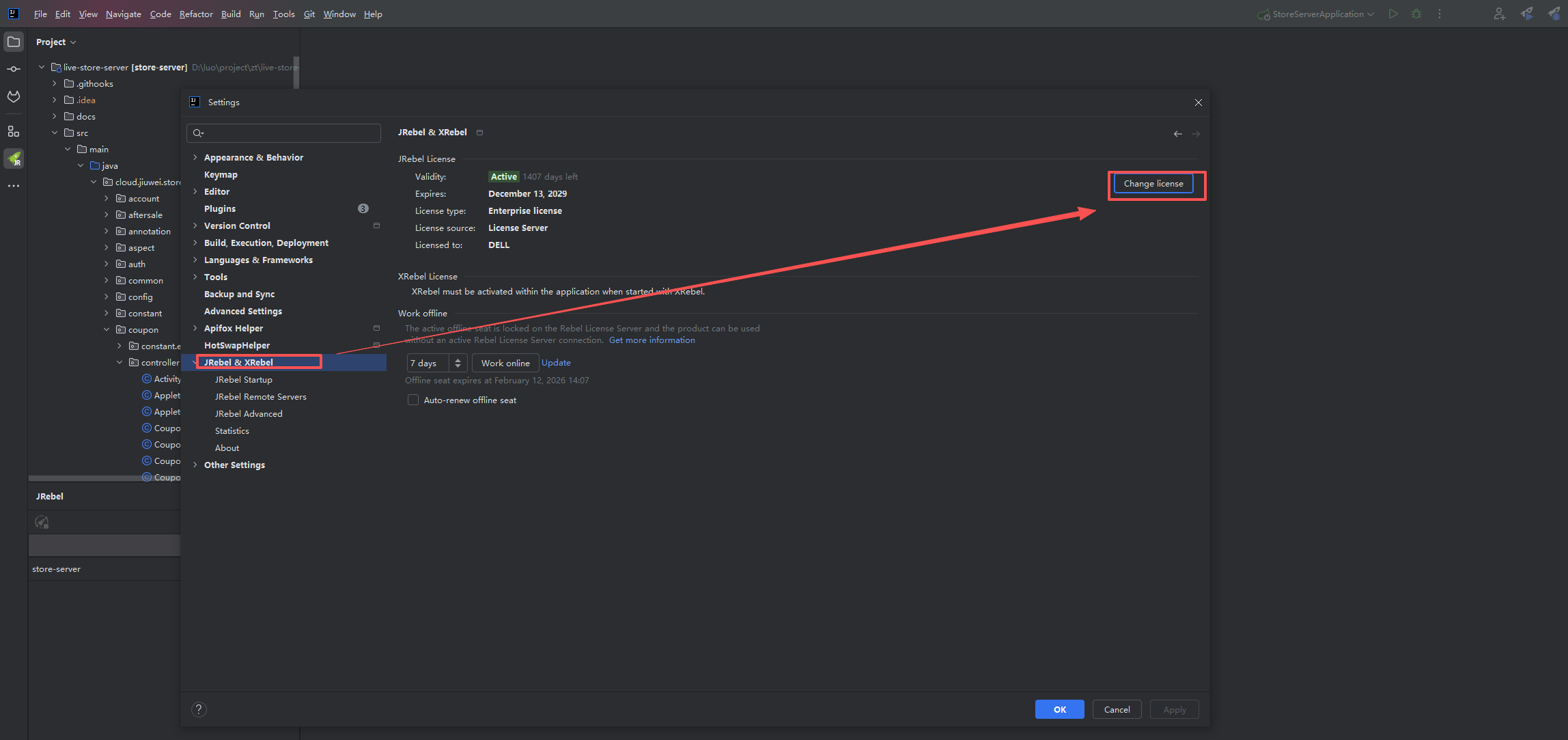 步骤二:使用JRebel