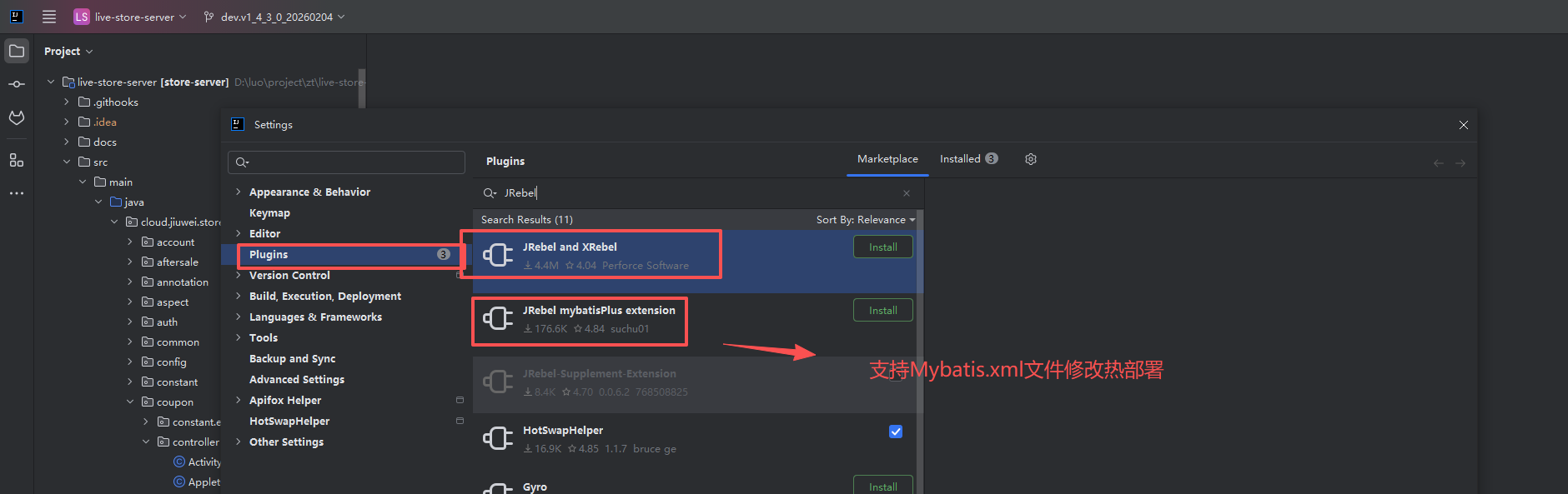 JRebel mybatisPlus extension