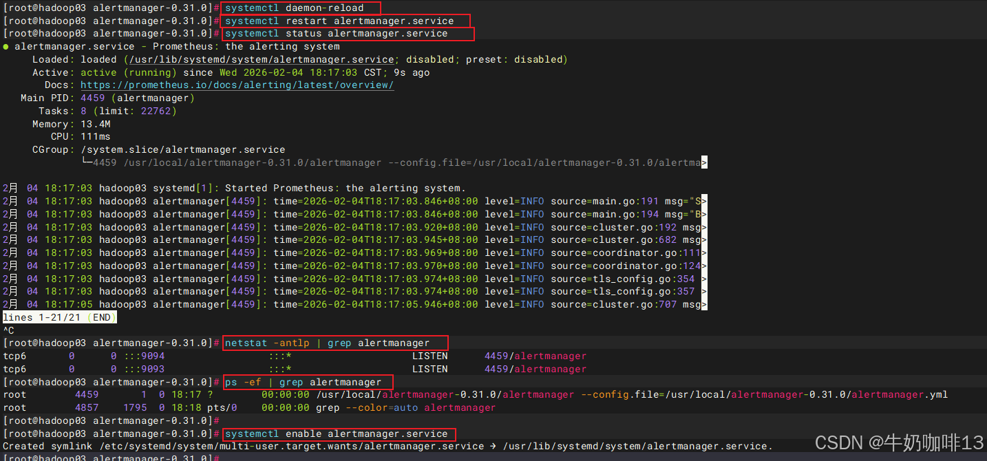 #注意:若是启动Alertmanager报错,则需要【查看系统日志中alertmanager相关的错误信息】后解决