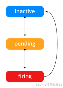 | 3 | inactive | 既不是pending也不是firing的时候状态变为inactive。 |